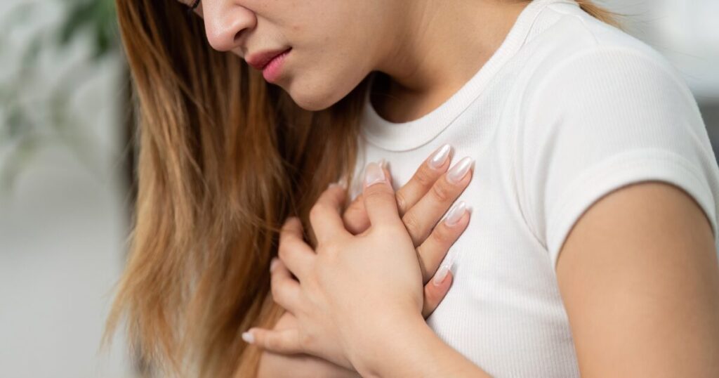 - 息切れ、胸の痛み、息苦しさが突然出現した